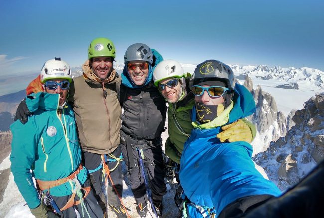 El 10 de marzo pasado cinco integrantes de nuestro comité técnico subieron a la cima del Fitz Roy y celebraron una simbólica reunión, que promete ser histórica. Confirma el nivel técnico de nuestros guías y alienta a seguir trabajando para que la AAGM siga siendo la más profesional de Sudamérica, con asociados que trabajan numerosas montañas del mundo.
