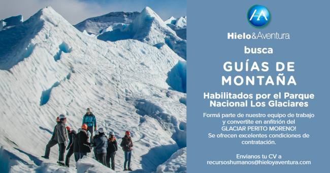 La empresa HIelo y Aventura, concesionaria del Parque Nacional Los Glaciares, con 30 años de sólida trayectoria en actividades de montaña, busca guías para trabajar en sus excursiones.