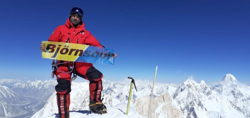 Nacho en la cima del Gasherbrum, en el Himalaya.