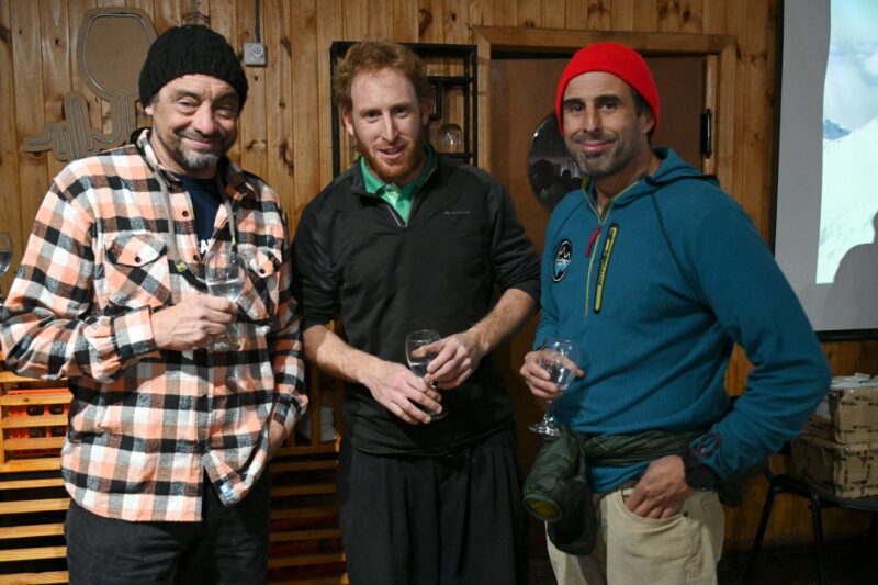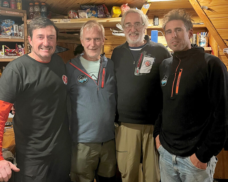 En la reunión por los 40 años de la AAGM, junto a Claudio Fidani, concesionario del refugio Jakob y Guillermo Lynch, refugiero en el Emilio Frey.