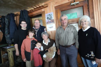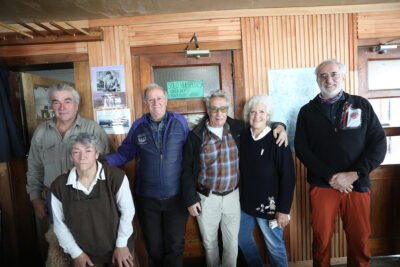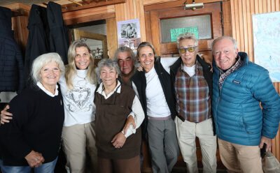 Marcos Masson y Graciela junto a su hijo Santiago, los nietos Oliver y Felix, Carlos (h) y Patricia Sonntag, en el homenaje realizado en el refugio.