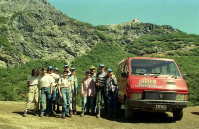 Los turistas subían al cerro López con camionetas y pequeños micros.